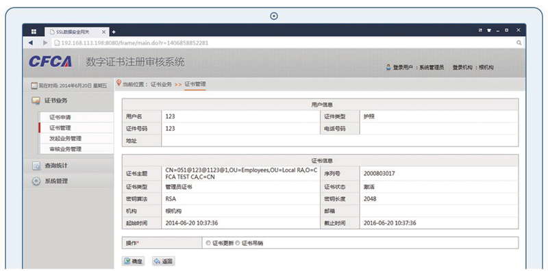 RA (Register Authority),證書注冊審核系統(tǒng),是一套為證書注冊審批機構(gòu)實現(xiàn)功能需求的軟件系統(tǒng),具有證書申請、證書審批、證書補發(fā)和下載等功能,提供多種部署模式,具有豐富的開發(fā)接口,可以與多種用戶系統(tǒng)進行無縫集成。RA功能是對CA功能的外部延伸,它能方便注冊審批機構(gòu)管理其證書及用戶。